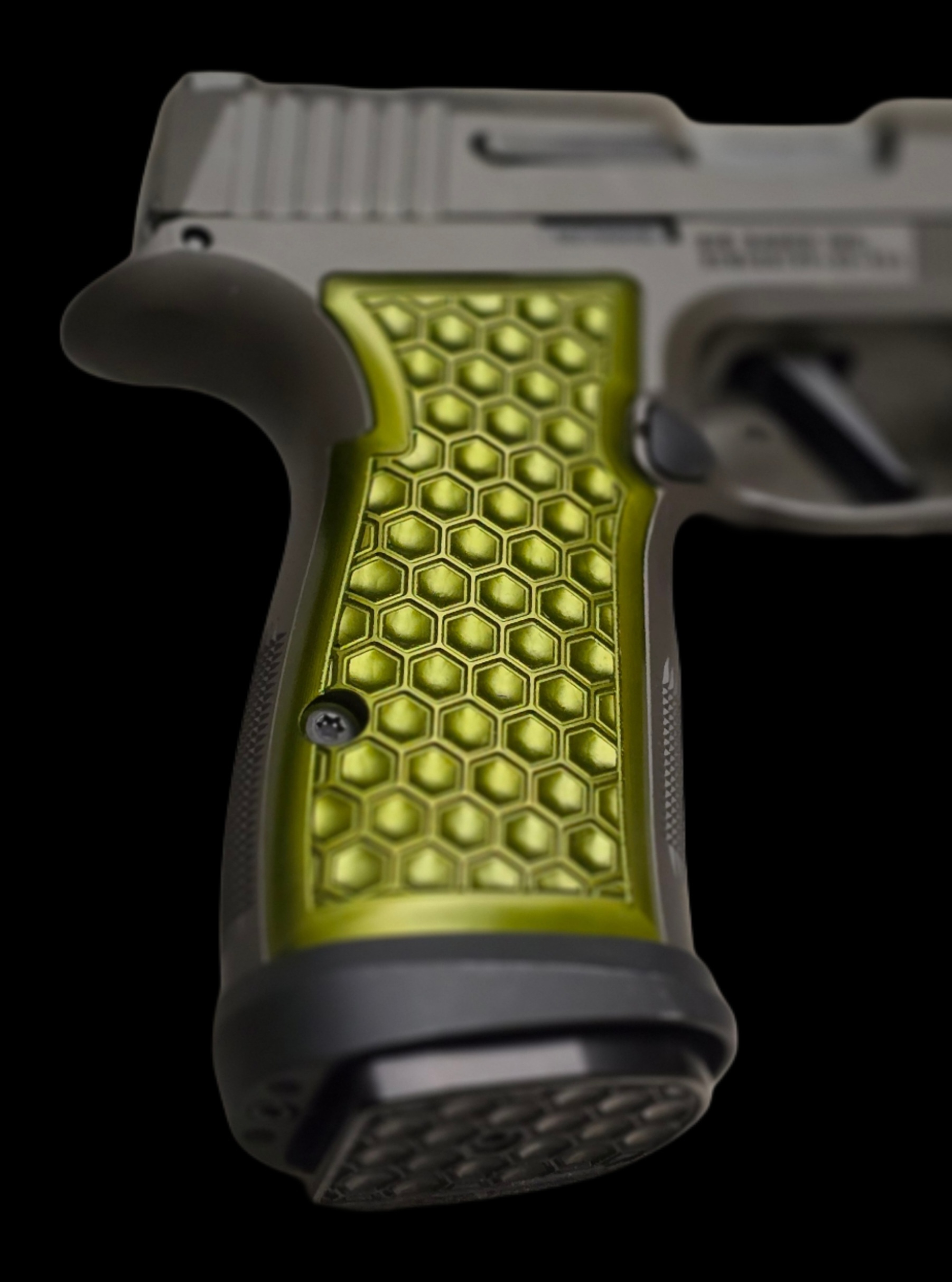 Our signature checkering pattern blends function and art into a grip that encourages proper fundamentals and techniques. Inspired by the tentacles of an octopus, each honeycomb features a contoured boss, while the thin contour design makes an ideal lightweight option for concealed carry.
